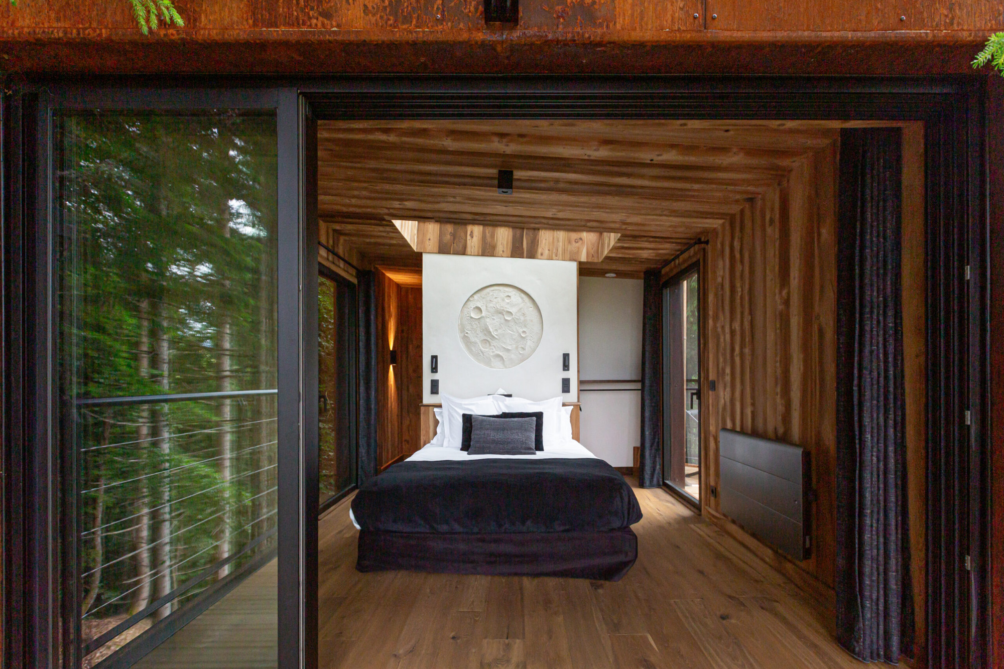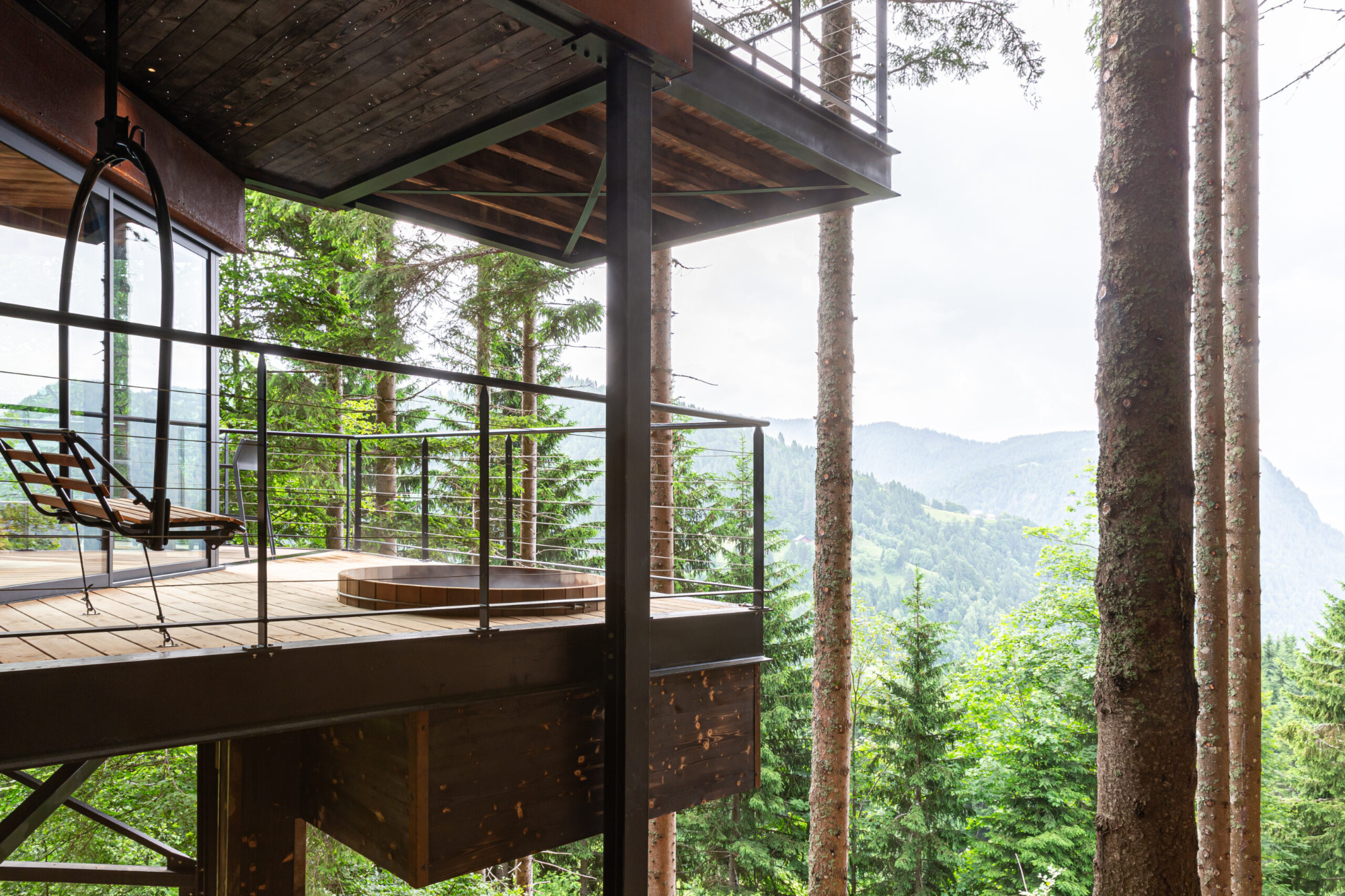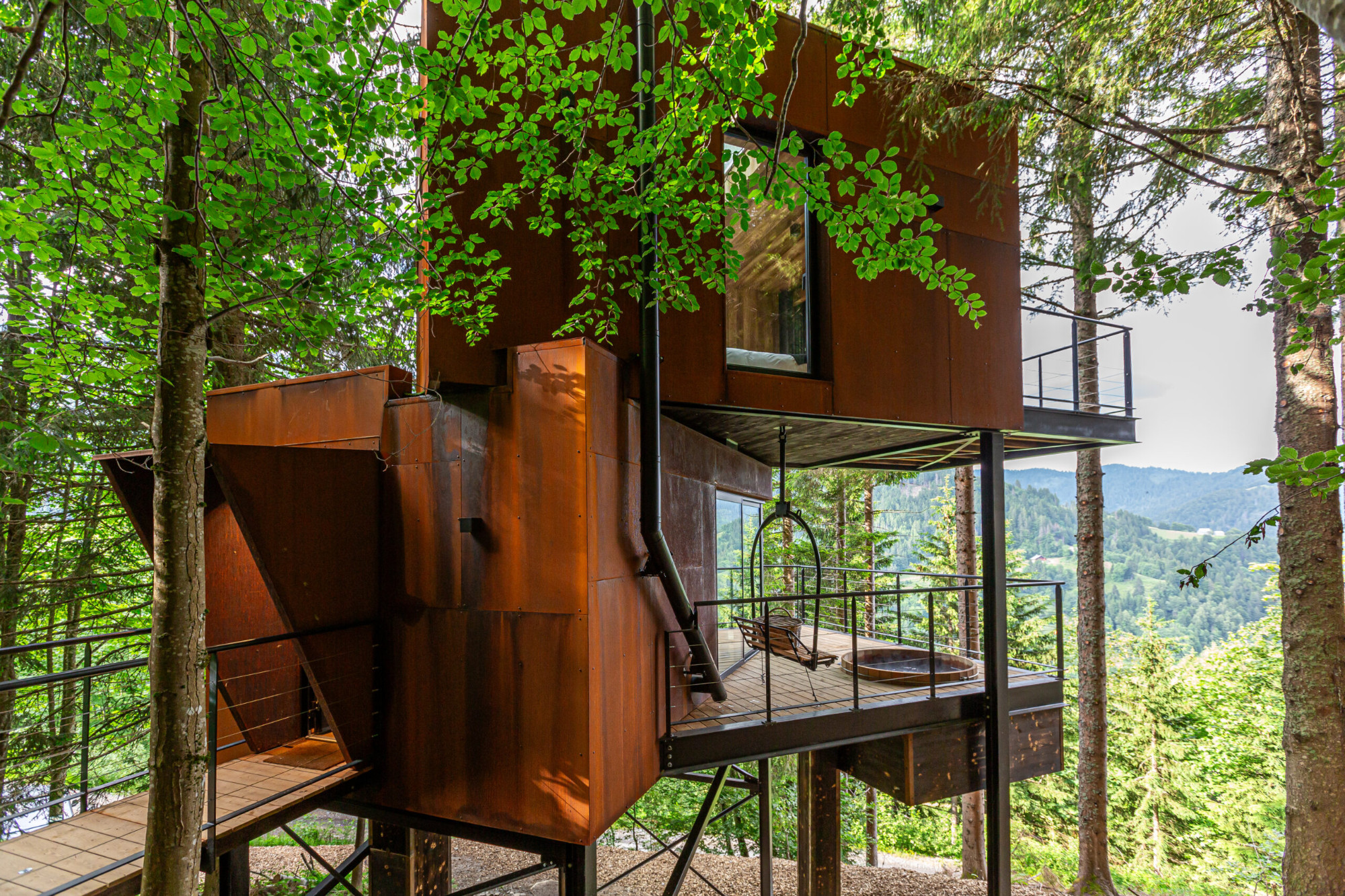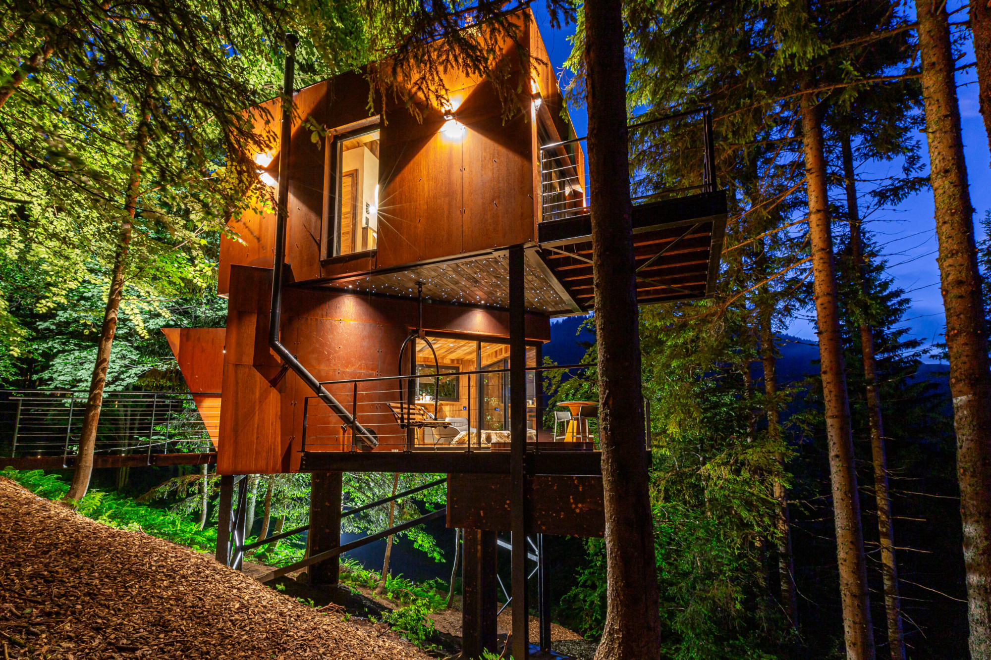 La cabane À la Belle Étoile est le choix parfait pour une escapade romantique au milieu des Alpes. Conçue pour accueillir deux personnes, elle combine charme et confort grâce à ses deux modules en acier suspendus dans les arbres. L'atmosphère intimiste vous invite à partager des moments inoubliables, que ce soit en contemplant les étoiles ou en profitant de la tranquillité de votre environnement. Cette cabane est équipée de tout le nécessaire pour un séjour confortable, vous permettant de vous ressourcer en toute sérénité. Profitez des couchers de soleil spectaculaires et entretenez la romance avec des dîners sous le ciel étoilé. Que ce soit pour un anniversaire, une lune de miel ou simplement un week-end en amoureux, la cabane À la Belle Étoile sera le cadre idéal pour créer des souvenirs inoubliables.