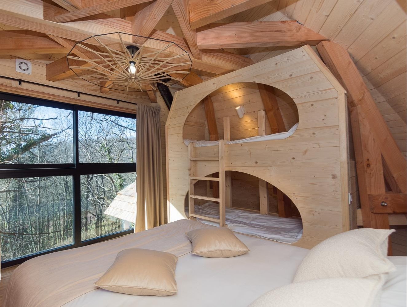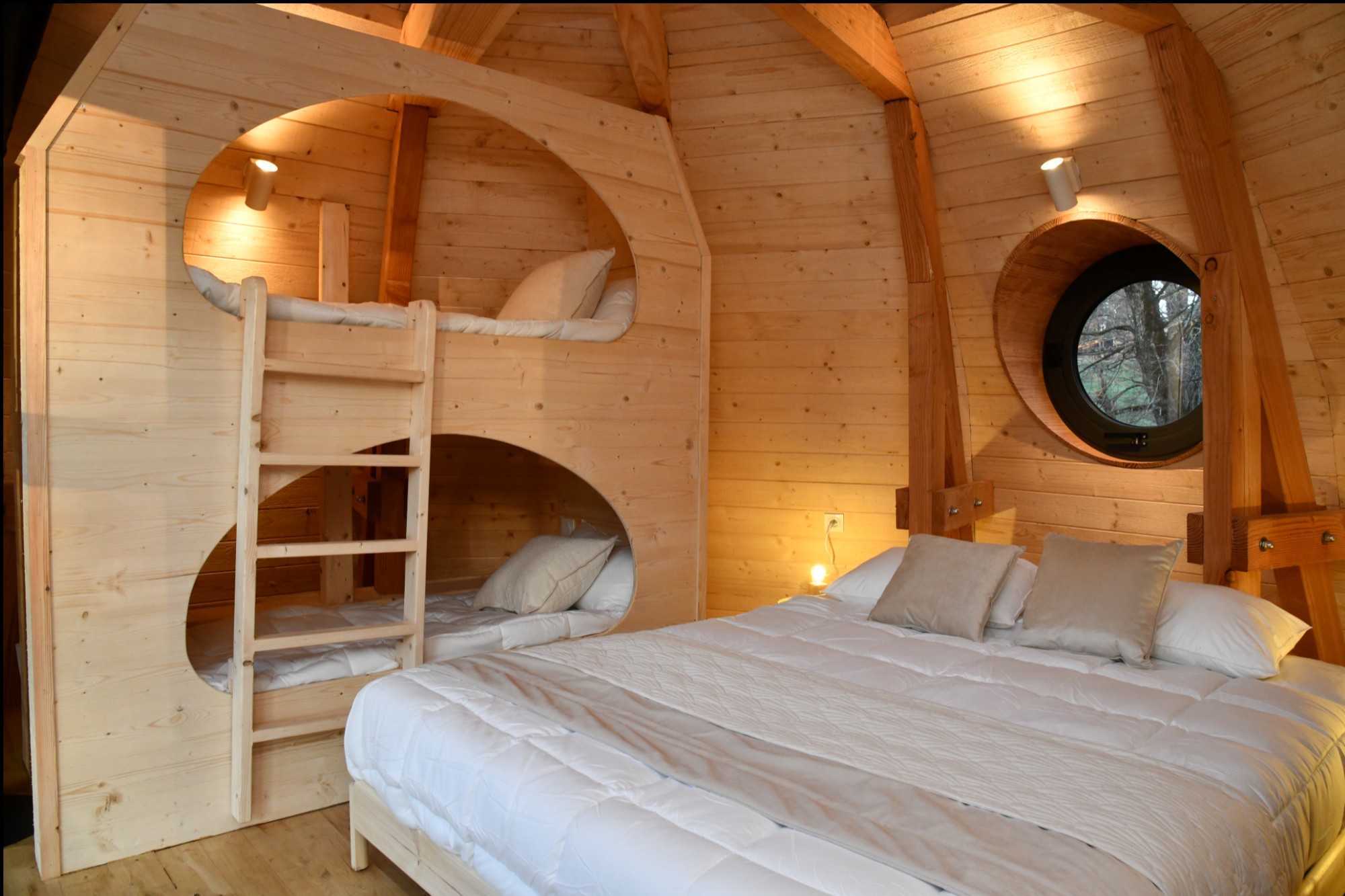 La Cabane Spa Goutte d'Amour au Domaine des Étoiles est une incarnation d'aventure et d'émerveillement pour les familles cherchant des souvenirs exceptionnels. Perchée sur des pilotis à six mètres au-dessus du sol, cette cabane offre une vue imprenable sur les châtaigniers centenaires qui l'entourent. Accessible par une charmante passerelle, elle est équipée pour pourvoir à un séjour confortable et inoubliable, avec un lit double à l'étage principal et un lit superposé idéal pour accueillir deux enfants. Les équipements de la cabane incluent un SPA privatif, où vous pouvez vous détendre en famille après une journée d'explorations. Ce n'est pas tout, les activités ludiques sont à l'honneur avec un toboggan pour descendre à toute vitesse, un mur d'escalade pour s'amuser en sécurité, et un filet pour une expérience unique de détente. Sur la terrasse, vous pouvez profiter des paniers repas en admirant le paysage naturel environnant ou passer la soirée à discuter sous les étoiles. Profitez du moment présent avec vos proches, loin des distractions de la ville. La Cabane Spa Goutte d'Amour est spécialement conçue pour ceux qui apprécient le confort moderne dans un cadre de nature préservée. C'est le choix parfait pour une aventure familiale mêlée de découverte, de détente et de plaisir. Vivez cette expérience unique et témoignez l’enthousiasme de vos enfants alors qu'ils explorent ce monde magique, suspendu entre ciel et terre.