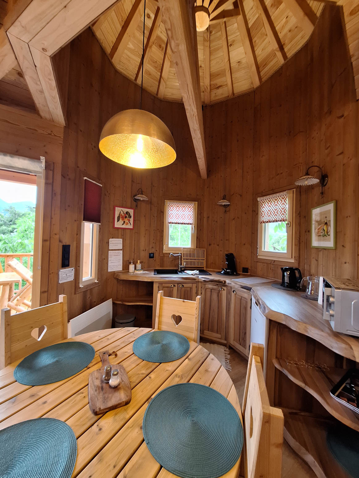 Vous cherchez un hébergement insolite pour vos prochaines vacances ? La cabane les 4 tours, située dans le domaine de Vercornoix, est le choix parfait pour les amoureux de la nature et des expériences uniques. Cette cabane, perchée dans les arbres, peut accueillir jusqu'à 6 personnes, ce qui en fait un endroit idéal pour des escapades en famille ou entre amis. Avec une chambre parentale et une chambre pour 2 personnes, tout le monde trouvera son espace. Le confort n'est pas en reste avec un canapé lit dans le séjour, permettant d'accueillir des amis supplémentaires ou des enfants. La cabane est également équipée de toutes les commodités nécessaires : cuisine avec équipements de base, salle de bain avec douche à l'italienne, et même un service de ménage inclus. Pour les amoureux des animaux, sachez que les animaux sont les bienvenus dans ce cadre bucolique. En plus de l'hébergement, le domaine propose des activités diverses qui raviront petits et grands. Que vous souhaitiez explorer les sentiers environnants, visiter les grottes locales ou simplement vous détendre dans le sauna, vous ne vous ennuierez pas. En effectuant une réservation, vous aurez l'opportunité de vivre une expérience authentique et mémorable au cœur du Vercors. N'hésitez plus, réservez votre séjour à la cabane les 4 tours et créez des souvenirs inoubliables dans cet écrin de nature dans la Drôme entre Valence et Grenoble.