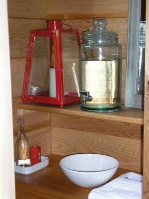 Caques cabanes à un panier avec de la vaisselle à disposition des cabaneurs qui viendraient avec leur dîner.