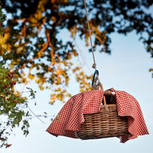 Votre petit déjeuner, compris dans votre nuitée, sera composé de la boisson chaude de votre choix, de croissants et de pain frais avec beurre et confiture, et du jus de nos pommes bio. Il vous sera déposé le matin vers 8h30, dans un panier que vous hisserez sur la terrasse.