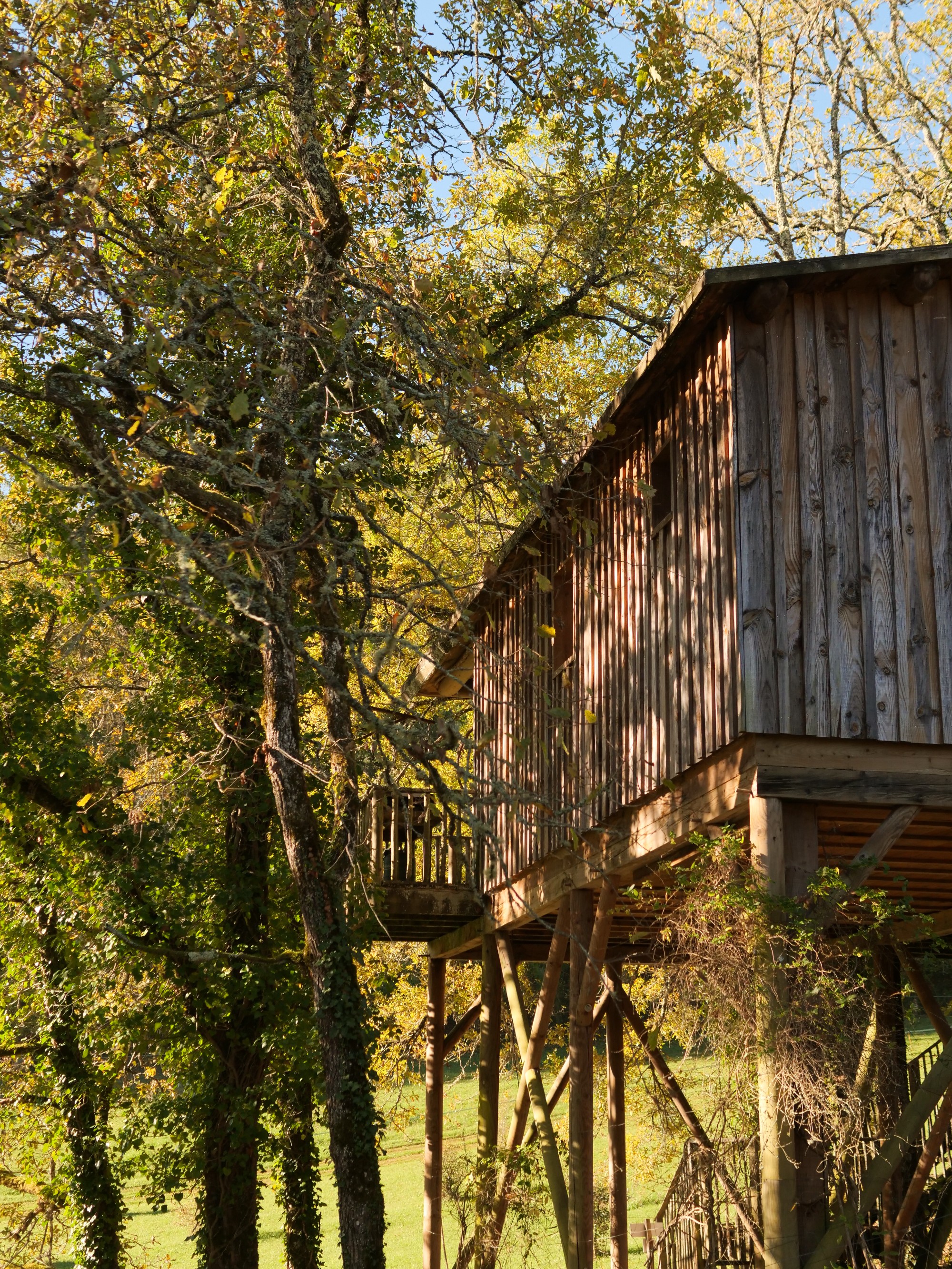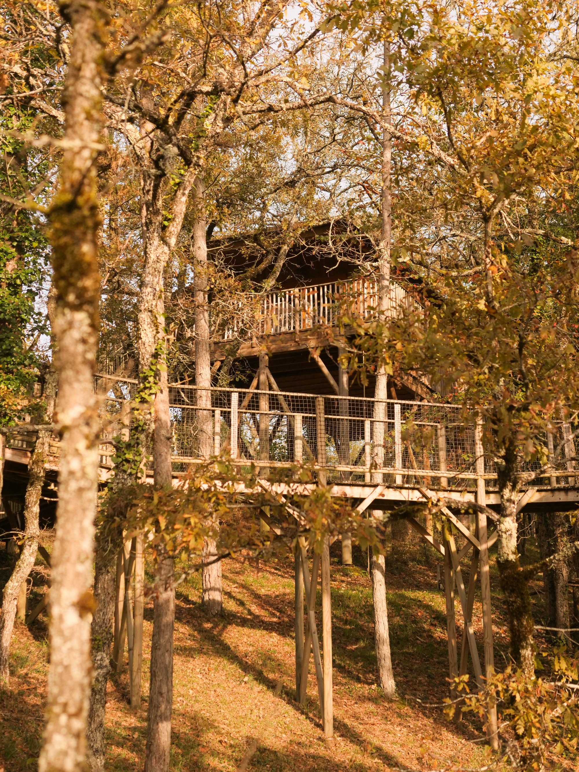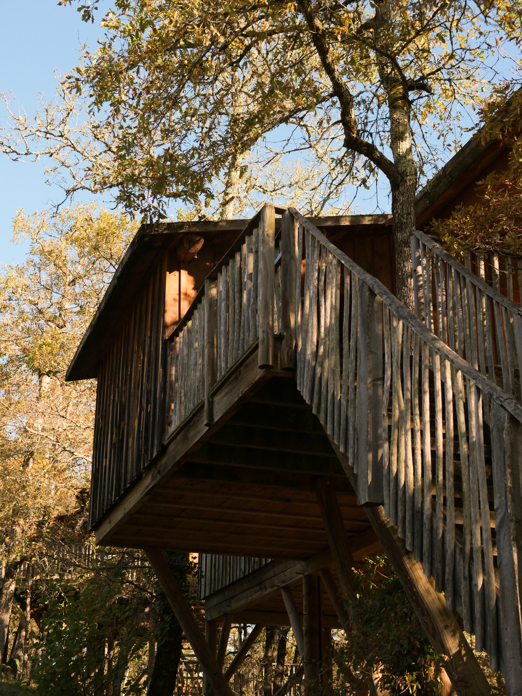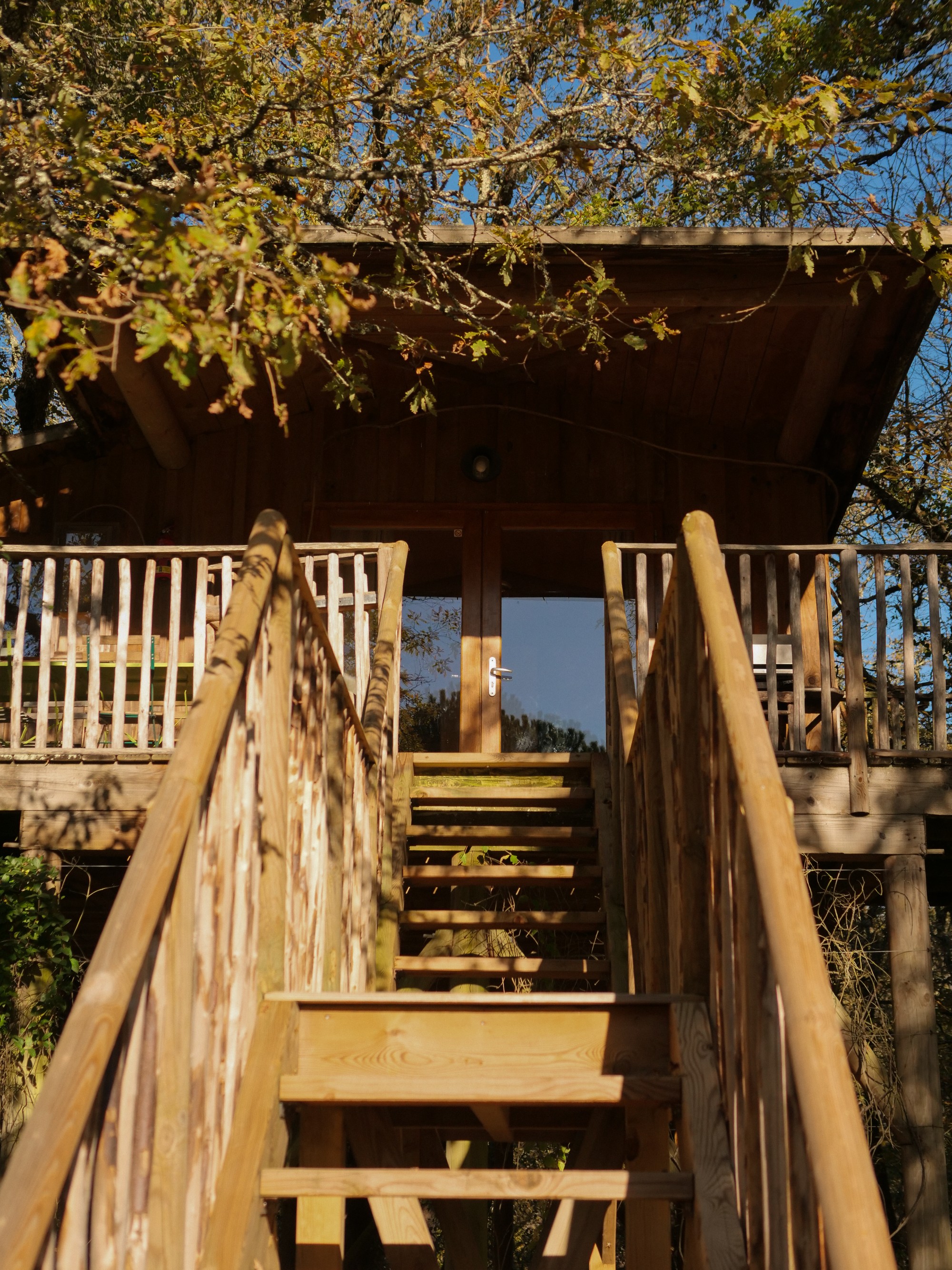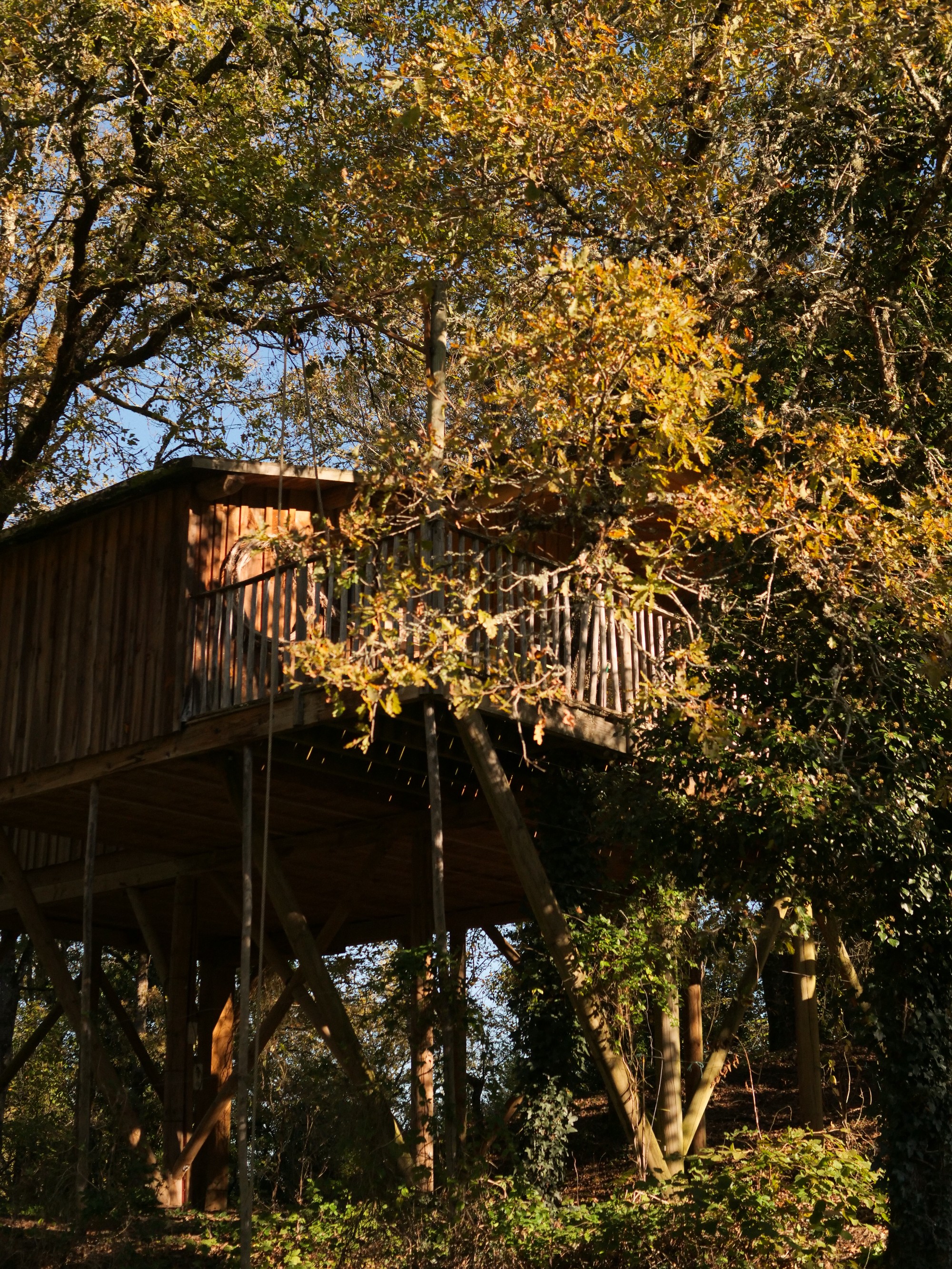 Séjourner dans une cabane perchée, c'est offrir à sa famille une expérience hors du commun. Nos cabanes, situées entre trois et six mètres de hauteur, vous plongent en pleine nature et vous garantissent une vue imprenable sur le domaine. Les cabanes perchées des Cabanes de Jeanne sont parfaitement équipées et conçues pour accueillir confortablement les familles, avec deux chambres doubles, un lit simple et un canapé-lit. L'aménagement intérieur des cabanes, avec eau courante, électricité, petite salle d'eau et cuisine équipée, vous assure un confort maximal. Une large terrasse offre également une opportunité idéale pour se détendre et profiter du cadre naturel environnant. Petits et grands pourront également s'amuser grâce aux équipements de loisirs disponibles, comme une table de ping-pong et une piscine. Les hôtes, Raphaëlle et Alban, se feront un plaisir de vous proposer divers services pour agrémenter votre séjour : livraison de petit-déjeuner, menus régionaux et possibilité de massages relaxants. Avec la proximité des principales attractions du Périgord, telles que les villages pittoresques et les sites archéologiques, une cabane perchée constitue le point de départ parfait pour des aventures inoubliables. En choisissant un séjour dans nos cabanes perchées, vous faites le choix d’une immersion totale dans la nature, alliant modernité et tradition, dans un environnement paisible et ressourçant.