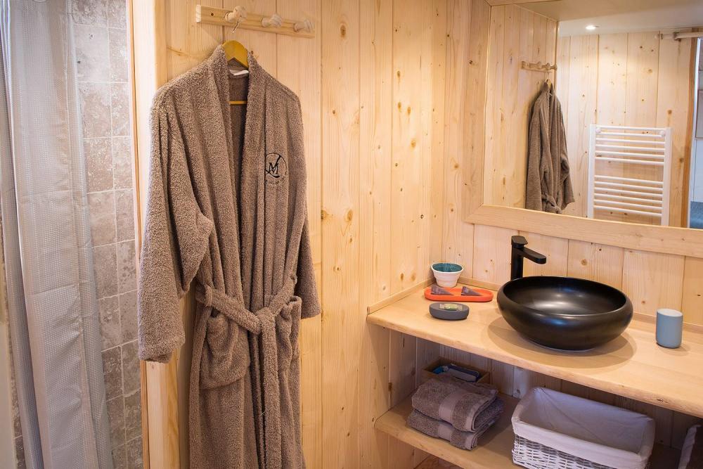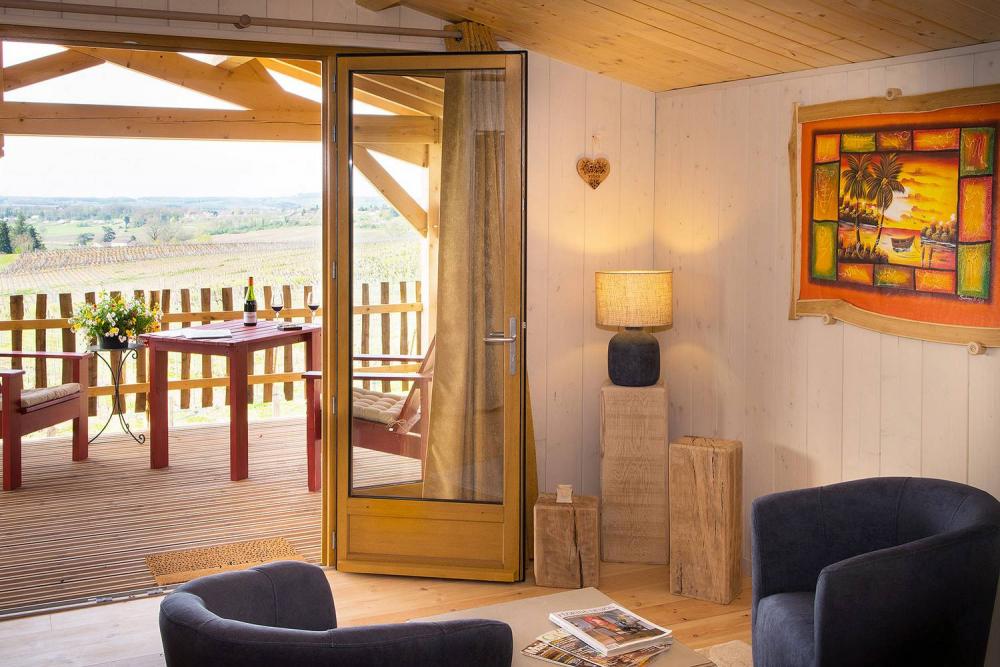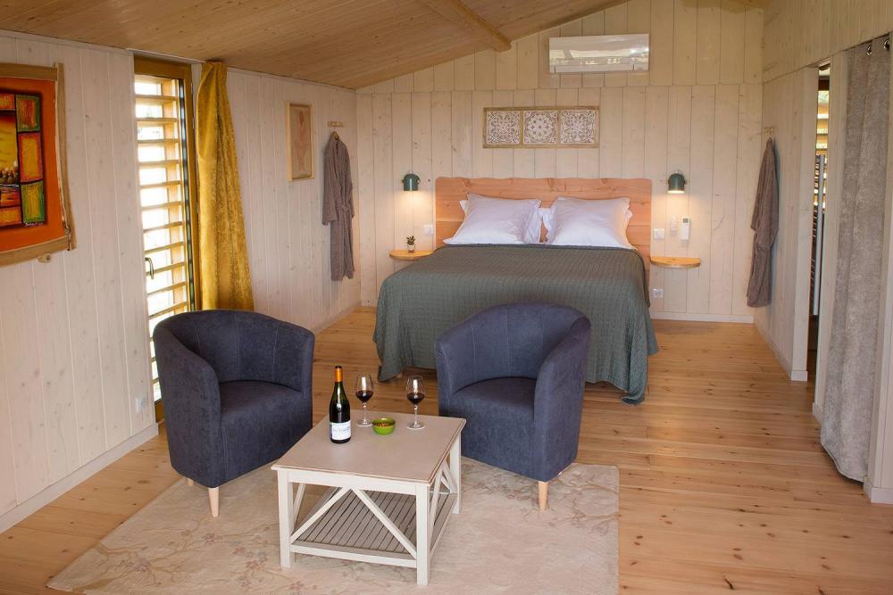 La cabane La Muscadelle est un véritable bijou pour ceux qui recherchent un séjour de détente et d'évasion au cœur de la Dordogne. Nichée parmi les vignobles bio de Monbazillac, elle séduit par son confort et son ambiance sereine. Dotée d'un spa privé, d'aromathérapie et de chromothérapie, cette cabane invite à des moments de relaxation absolus. Sa terrasse spacieuse surplombant les vignes vous offre des instants tranquilles à tout moment de la journée. Que ce soit pour admirer le lever du soleil ou pour déguster un verre de vin sous les étoiles, La Muscadelle offre une expérience unique de connexion avec la nature. Conçue pour accueillir deux personnes, cette cabane est équipée d'une literie king size avec linge de lit en satin coton, vous assurant un confort optimal durant votre séjour. Le petit-déjeuner, inclus, est livré dans un panier directement à votre terrasse, pour maximiser votre tranquillité. Grâce à sa localisation idéale, elle est le point de départ parfait pour explorer les trésors locaux. Entre la visite des châteaux environnants et des balades dans le milieu naturel préservé, ou encore une pause détente au spa du domaine, chaque journée se transforme en une aventure mémorable. La Muscadelle n'est pas simplement un lieu de séjour, c’est un véritable sanctuaire de paix où chaque détail a été pensé pour votre bien-être.