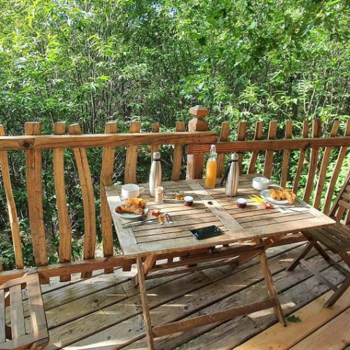Nichée au cœur du Périgord Vert, Ô bois dormant vous accueille pour une expérience unique mêlant confort et écologie. Ce domaine de plus de deux hectares propose un retour aux sources avec des hébergements insolites en pleine nature. Dès votre arrivée, vous serez plongé dans un environnement boisé où tout est pensé pour minimiser l'impact écologique. Loin de l'agitation urbaine, vous pourrez profiter d'un cadre idyllique pour vous ressourcer.\n\nJulien et Cyril, vos hôtes, vous invitent à découvrir les merveilles du Périgord à travers diverses activités. Que vous soyez amateur de randonnées, de nature ou de gastronomie locale, tout est conçu pour que votre séjour soit inoubliable. Explorez les sentiers environnants, observez la faune locale et reposez-vous dans votre cabane perchée. Le domaine offre deux charmantes cabanes, chacune équipée pour un confort optimal tout en respectant l'environnement.\n\nDe plus, Ô bois dormant propose des services de restauration qui favorisent les produits locaux. Un petit déjeuner savoureux à base de produits frais vous est préparé chaque matin, et le soir, vous aurez l'opportunité de déguster des plats traditionnels en bocaux, sans oublier l'option de cuisine autonome avec des installations à l'accueil. Venez vivre une expérience authentique axée sur le respect de l'environnement et la reconnexion avec la nature dans ce havre de paix unique en Dordogne.