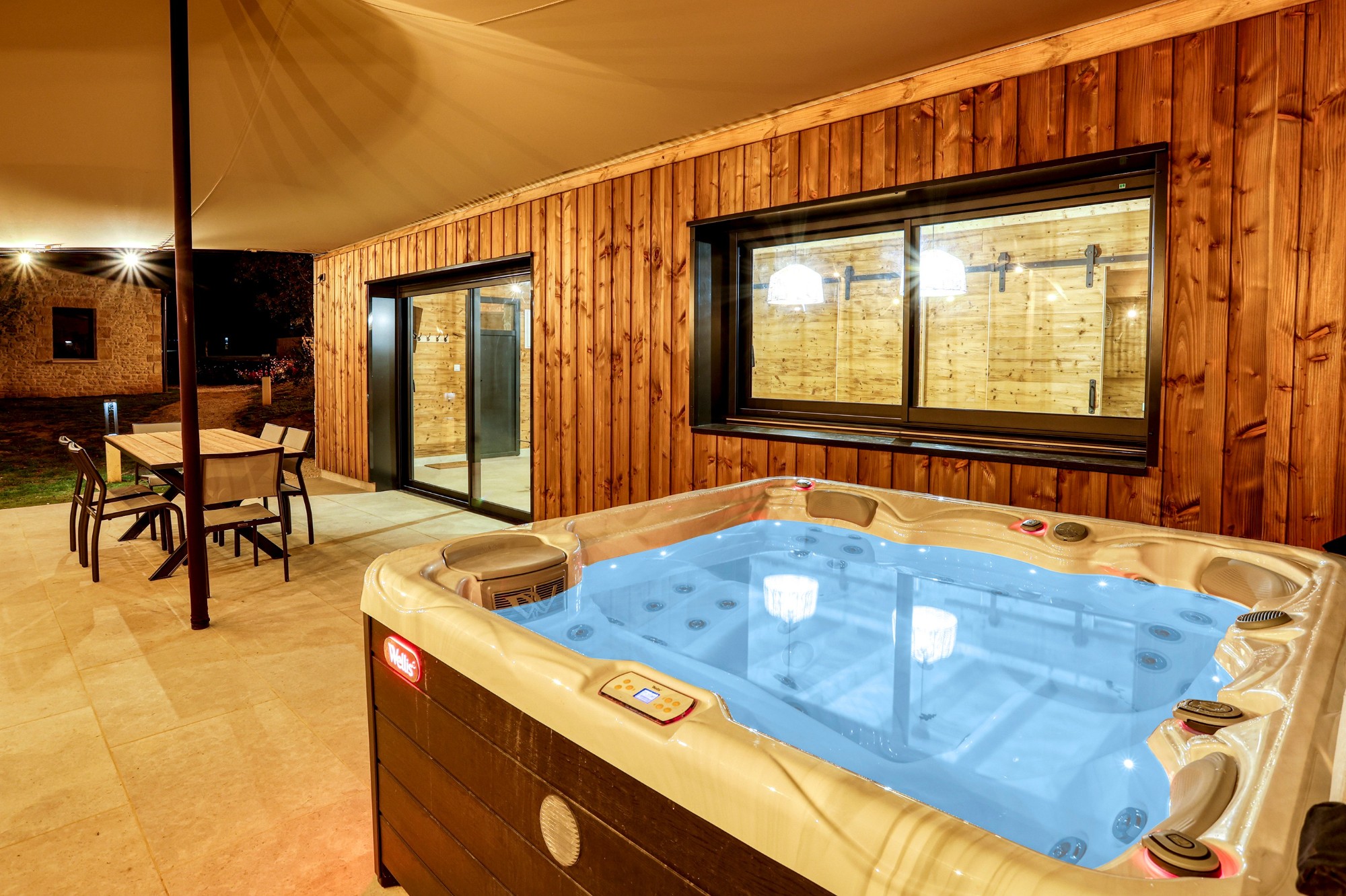 Le lodge spa des oliviers est un véritable cocon de sérénité situé dans un écrin de verdure. Parfait pour une escapade en couple ou en famille, cet hébergement vous invite à vivre une expérience unique, à l'abri du bruit et de l'agitation. Vous serez immédiatement charmé par son ambiance cosy et chic. Sa terrasse orientée sud-ouest est l'endroit idéal pour profiter du soleil tout au long de la journée, tout en étant enveloppé par le doux parfum des chênes et des pins environnants. Pour les amoureux de la nature, c'est un véritable privilège de se réveiller au son des oiseaux et de contempler un paysage à couper le souffle. Équipé d'un spa privatif couvert, vous pourrez vous détendre après une journée d'aventures. La piscine chauffée et le terrain de pétanque ajoutent aux nombreuses activités disponibles sur le domaine. Que vous soyez en quête de tranquillité ou désireux d'explorer les beautés du Périgord, le lodge spa des oliviers saura répondre à toutes vos attentes. Ne manquez pas de déguster le petit-déjeuner ou le dîner périgourdin en option, disponibles sur demande. Réservez votre séjour et laissez-vous emporter par l'expérience apaisante qu'offre cet hébergement insolite.