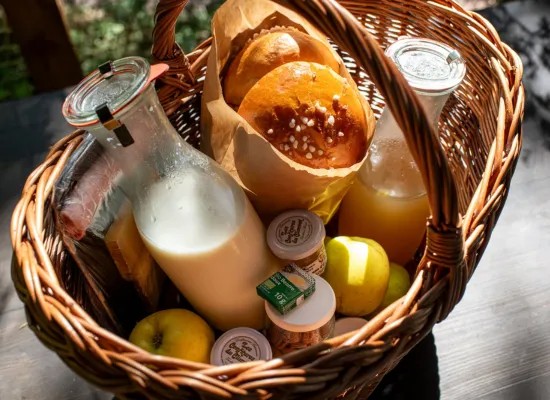 Découvrez nos différents types de paniers repas, conçus pour satisfaire tous les goûts ! Veuillez noter que les boissons ne sont pas incluses dans les paniers repas, mais une bouteille d'eau plate vous sera fournie. Une carte des boissons est également disponible à l'accueil et dans les livrets d'accueil présents dans chaque hébergement.