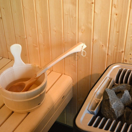 Le sauna peut accueillir jusqu'à 4 personnes .
