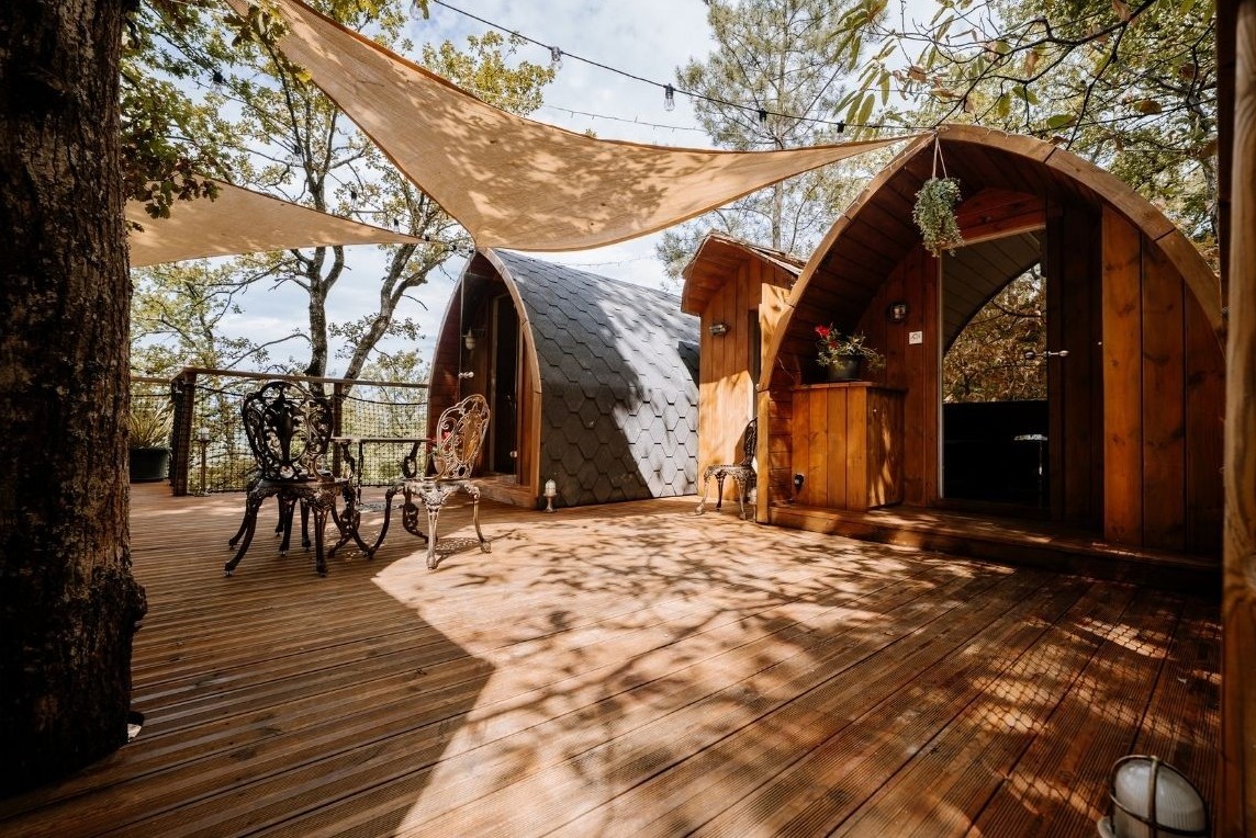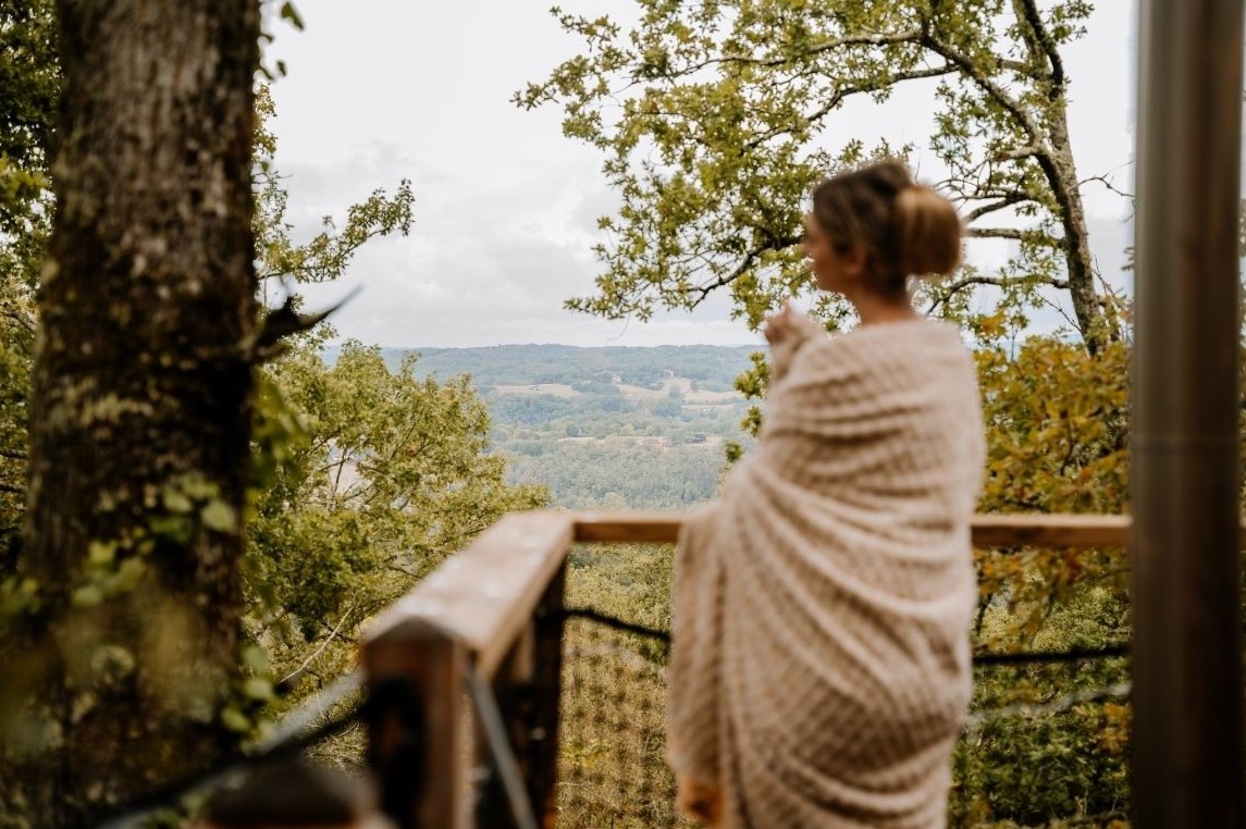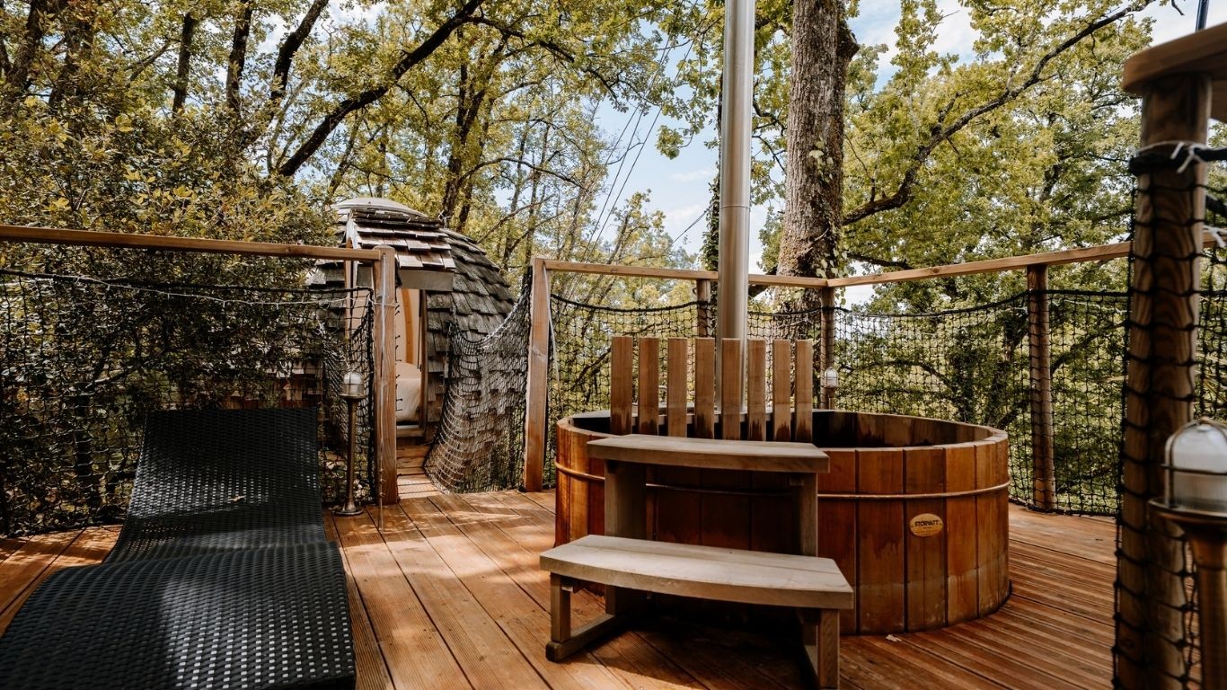 Une terrasse perchée dans les arbres, avec vue sur la vallée de la Dordogne, et tout autour de cette terrasse, une passerelle qui mène au lovnid, un bain nordique, une cuisine équipée dans un pod, un magnifique sauna vitré, une salle de bain et des WC séparés. Lit fait à l'arrivée, petit déjeuner et linge de maison inclus. Accès également à une (ou deux suivant la saison) piscine chauffée. Située dans le Périgord Noir, cette cabane est le point de départ idéal pour découvrir les grottes préhistoriques de Lascaux, les châteaux médiévaux de Beynac et Castelnaud ou encore les villages classés comme Sarlat et La Roque-Gageac. Entre nature, histoire et gastronomie locale, offrez-vous une parenthèse hors du temps dans l’une des plus belles régions de France.