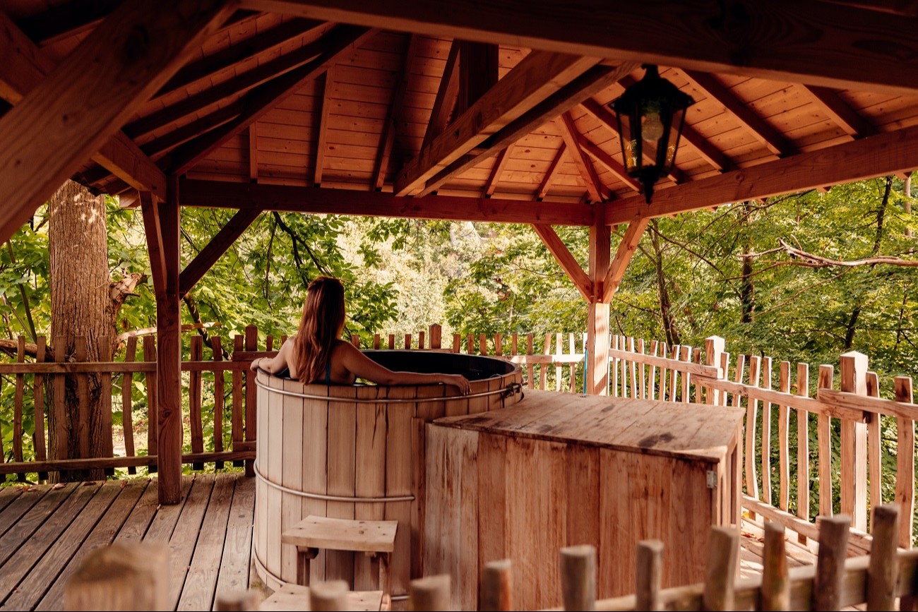 La cabane Spa Origin, haut de gamme et aménagée façon loft, incarne une évasion de rêve perchée à 13 mètres du sol. Pensée pour deux personnes avides de luxe et de nature, elle réunit confort moderne et vues spectaculaires, tissées d'intimité et de douceur. Côté détente, sa terrasse abrite un bain nordique chauffé à souhait, invitant à des moments inestimables entre ciel et terre, parfaitement concoctés pour une relaxation ultime en véritable immersion nature. Loin des nuisances des grandes villes mais ne sacrifiant aucunement le confort, cet espace est autonome : avec électricité, eau courante et une salle de bain élégante. La cabane en devient l’endroit parfait pour oublier stress et responsabilités. Les activités riches et variées autour du domaine complètent ce séjour unique : partez découvrir les joyaux historiques des alentours ou sillonnez les sentiers boisés, en respirant à pleins poumons l'air frais des forêts avoisinantes. Dans cet écrin où tout est pensé pour votre bien-être, les moments partagés n’auront de cesse de renforcer vos liens, en transformant cette parenthèse en apothéose de sérénité, délestée de préoccupations et nourrie par une beauté simple mais absolue.