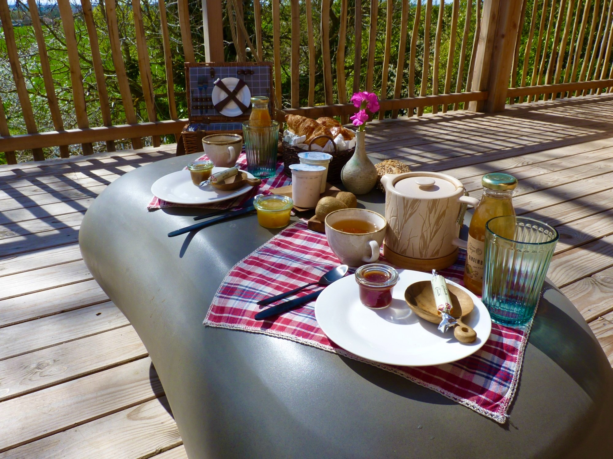 Le petit déjeuner est inclus dans le prix de la nuitée. Il est composé de produits locaux et servi dans un panier à hisser sur la terrasse.