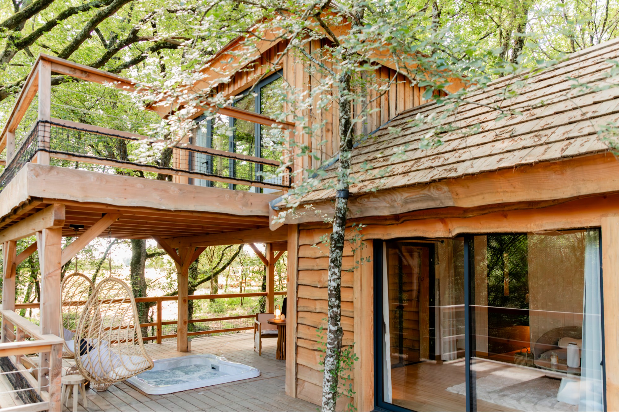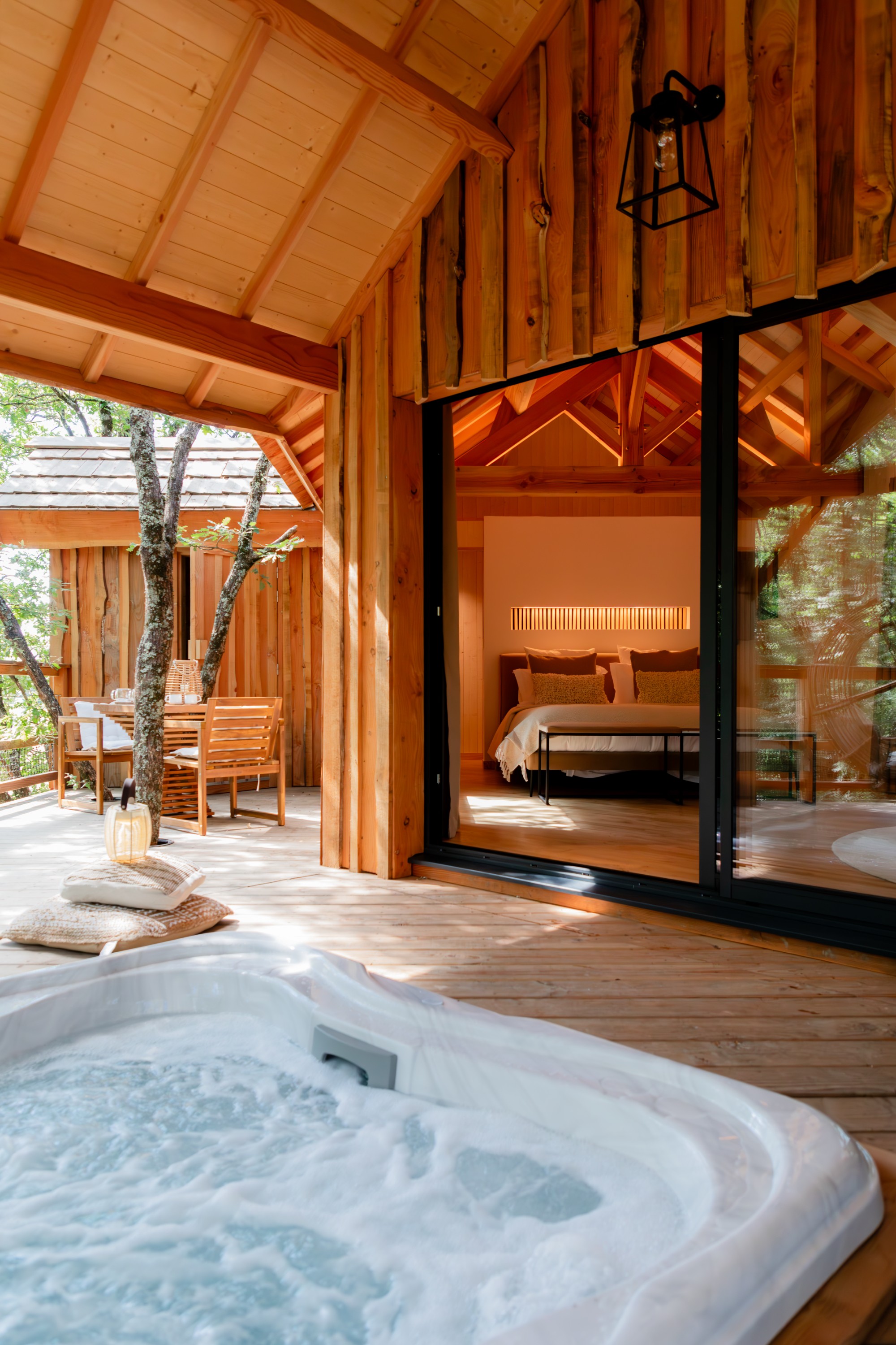 Perchées à plus de 5 mètres, nos cabanes en bois de luxe vous invitent à une expérience enchanteresse, où le raffinement côtoie la nature. Chaque cabane, avec ses prestations haut de gamme, vous promet des moments de pur romantisme et de détente, face à des panoramas époustouflants et des couchers de soleil à couper le souffle. Laissez-vous emporter dans un voyage où le luxe et l’évasion se conjuguent pour créer des souvenirs inoubliables, en parfaite harmonie avec la nature.