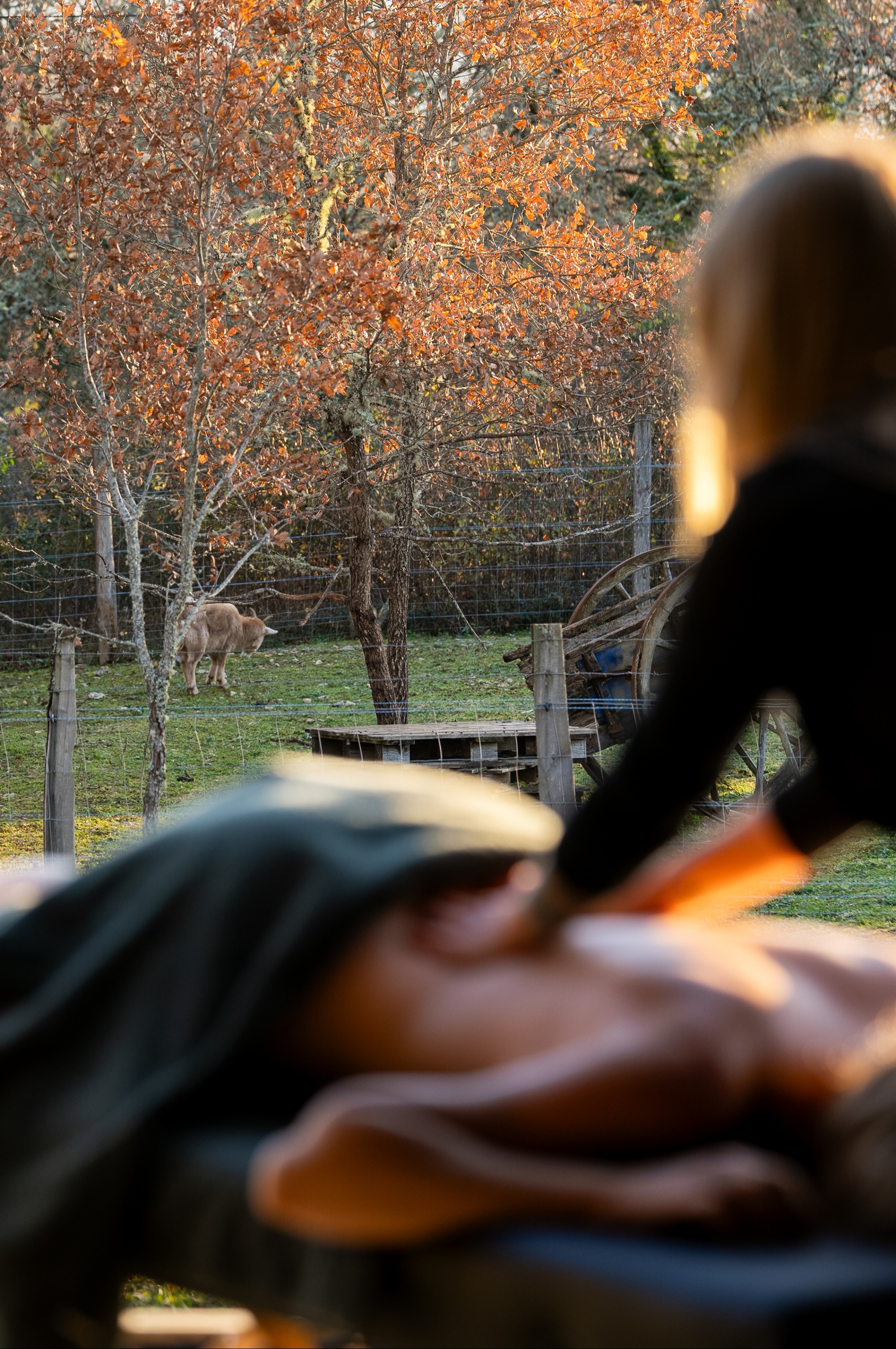 Prolongez votre détente avec un massage de 45 minutes, réalisé par mes soins. À l’intérieur, dans une ambiance douce et tamisée, ou sur la terrasse quand le temps le permet, laissez chaque geste détendre vos muscles et apaiser votre esprit. Un véritable voyage sensoriel pour se ressourcer à deux et savourer un moment d’harmonie totale.