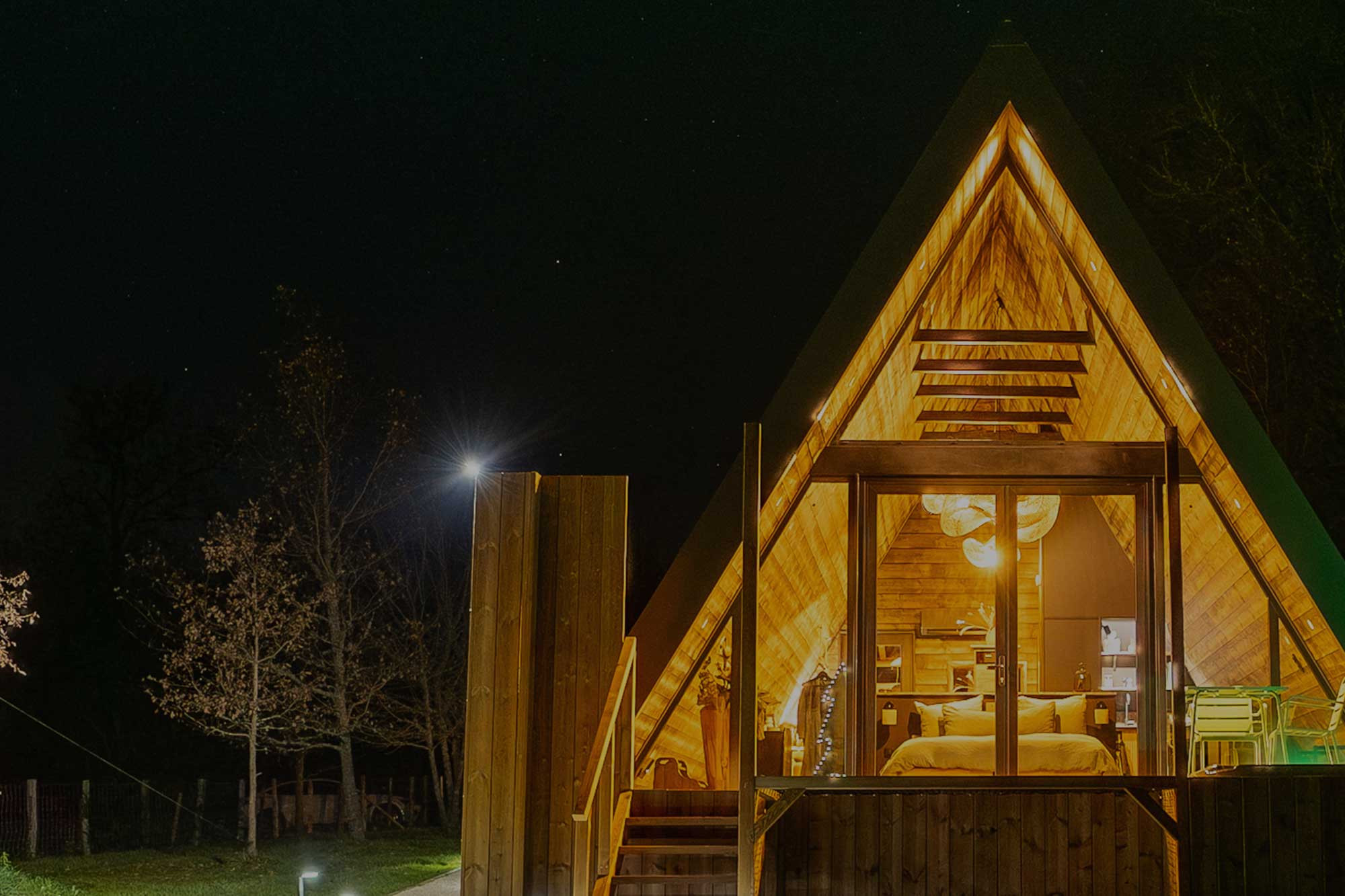 Perchée sur les hauteurs de Souillac, la cabane L’Atypique charme par son architecture triangulaire originale et son ambiance douce et chaleureuse. Pensée comme un véritable cocon pour deux personnes, elle marie harmonieusement modernité et authenticité, grâce à ses larges baies vitrées qui baignent l’espace de lumière naturelle tout en offrant une belle ouverture sur la nature environnante.