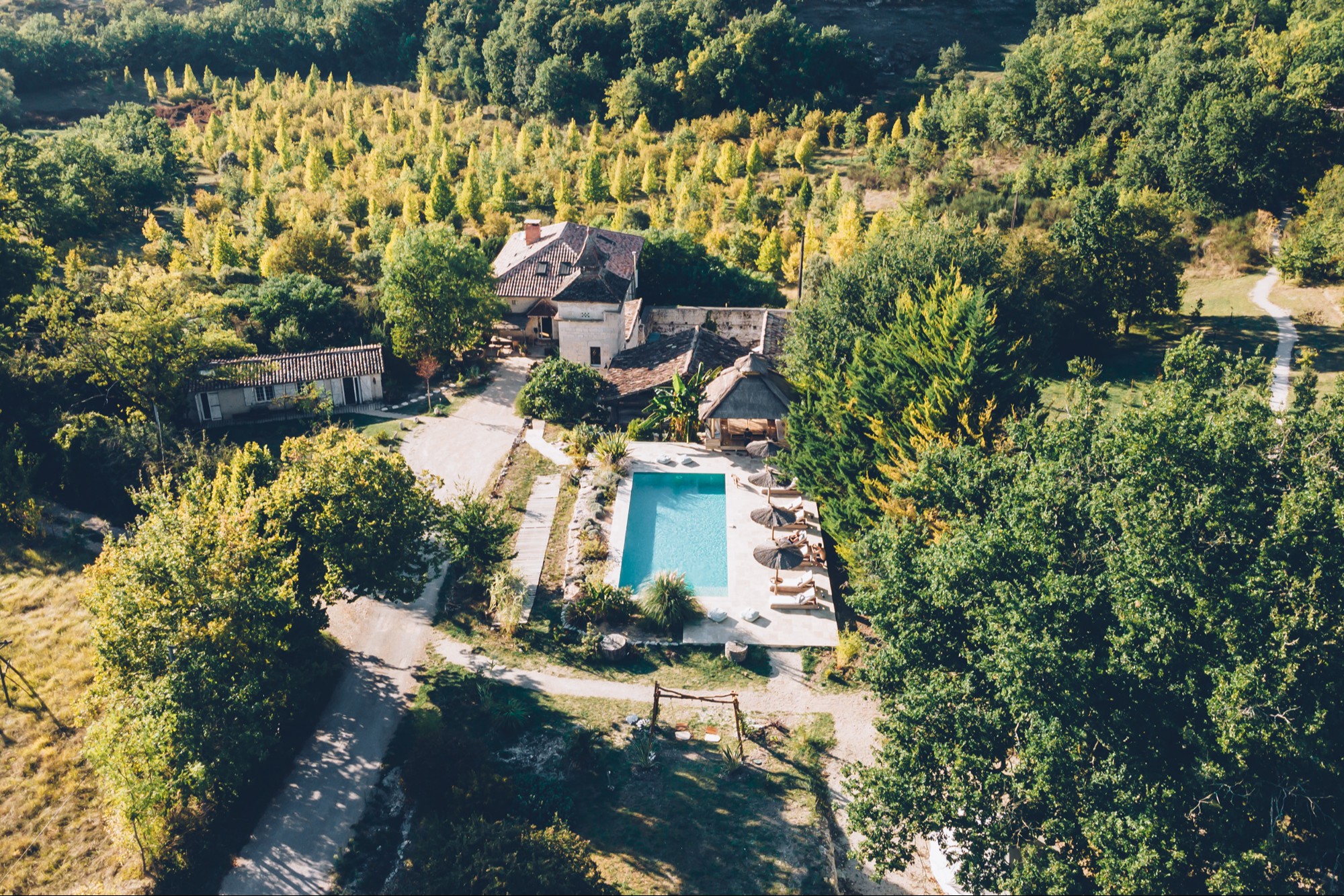 à PELLA ROCA Cabane & Spa vous ne profiterez pas que de votre cabane perchée son jacuzzi, son sauna...vous pourrez aussi la possibilité de lezarder et vous rafraichir dans la piscine du domaine pendant votre séjour. Grande piscine 12*5 chauffée et ouverte pendant la saison, un beau gazebo pour les siestes et les lectures....