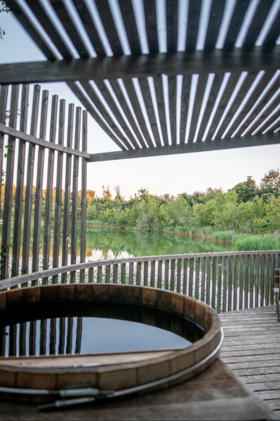 La Cabane Spa Échappée en Provence offre une retraite équilibrée parfaite pour se détendre et se ressourcer loin des trépidations de la vie urbaine. Érigée sur pilotis, cette cabane magnifiquement conçue offre une perspective dégagée sur une nature authentique et revigorante. L'architecture en bois naturel et les grands espaces vitrés vous immergent totalement dans votre environnement, rendant chaque réveil lumière et douceur. À l'intérieur, la Cabane Spa Échappée propose un espace de vie calme et apaisant. Le coin salon vous accueille pour des moments de relaxation, tandis que le lit central vous promet des nuits réparatrices au cœur de cette nature préservée. Un des points forts du lieu est indéniablement le spa privé installé à l'extérieur : laissez-vous séduire par le bain nordique et détendez-vous dans une eau naturellement traitée sans produits chimiques, pour une relaxation en harmonie totale. Le matin, un copieux petit déjeuner de produits locaux est discrètement déposé à votre porte, vous permettant de débuter la journée au calme, avec toute l’énergie nécessaire pour profiter des activités offertes par le domaine. Les amateurs de sensation douce trouveront ici un véritable havre où le temps semble suspendu : farniente sur la terrasse, promenade parmi les vignes ou exploration des trésors alentours, le cadre parfait pour se ressourcer. La Cabane Spa Échappée, c’est la promesse d’un séjour mémorable en parfaite symbiose avec la nature et le confort. Laissez-vous envahir par ce moment de plénitude, loin des bruits du quotidien.