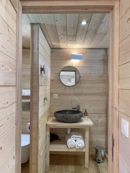 La Cabane Spa Paradis est une invitation à un séjour hors du temps, sur les eaux calmes et le cadre bucolique. Ce cocon flottant vous promet une (re)découverte de la nature sous ses aspects les plus enchanteurs. Accessible par un ponton en bois, la cabane s’ouvre sur un salon lumineux où chaque détail est pensé pour accueillir confortablement ses visiteurs. Dotée d'une grande baie vitrée, la chambre principale offre une vue imprenable sur le lac, procurant une sensation de flotter au-dessus des eaux. Cette cabane, autant refuge que lieu de retrouvailles avec la nature, est parfaite pour des moments en toute intimité. Sur la terrasse, le bain nordique privatif représente un des atouts majeurs de cette cabane. Grâce à la technologie écologique utilisée, l'eau est naturellement traitée sans produits chimiques, vous offrant une expérience de relaxation unique. Eveillé par le doux murmure de l’eau, savourant un petit déjeuner confectionné avec des produits locaux et livré chaque matin, vous commencerez vos journées en toute douceur avant de partir à la découverte des environs – l'environnement vous encourage naturellement à des flâneries romantiques ou des découvertes plus sportives. La Cabane Spa Paradis est le havre parfait pour qui cherche à s'offrir une pause à deux, loin de l’agitation du quotidien. Laissez-vous envelopper par cette atmosphère magique, où le confort moderne sublime la beauté authentique de la nature.